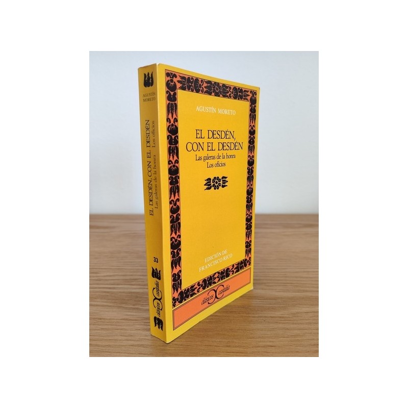 El desdén con el desdén es la gran obra de Agustín Moreto. Síntesis de las virtudes de la comedia cortesana, propone, en desenfadada peripecia, un remedio para vencer la indiferencia del ser amado: mediante una frialdad fingida, Carlos logrará restablecer el orden natural del amor, perturbado por los desvaríos escolásticos de Diana.