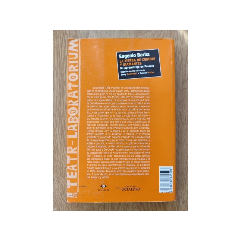 La Tierra de cenizas y diamantes es la historia de una amistad nacida del trabajo común, pero también es mucho más. La idea de publicar las cartas partiendo de un relato que represente el contexto –la Polonia de entonces- ha dado origen a este libro, cuya primera parte –La Tierra de cenizas y diamantes- cuenta un fragmento de la historia subterránea del teatro y proporcionar un testimonio sobre unos años cruciales para el teatro de la segunda mitad del siglo XX. La segunda parte –Querido Kim- presenta, en orden cronológico, las 26 cartas escritas por Grotowsky a Barba.