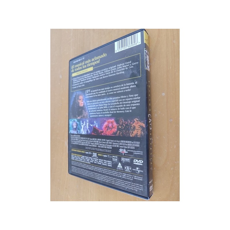 Grabación del legendario musical creado en 1981 por Andrew Lloyd Webber, basado en la obra "Old Possum's Book of Practical Cats" de T. S. Eliot. El argumento narra la vida de una comunidad de gatos comunes que, una vez al año, de noche, se escapan de sus casas y se reúne en el basurero del barrio a esperar la llegada de su líder, el anciano Old Deuteronomy. Este gato es el padre y abuelo de muchos de los gatos Jellicles y es quien cada año da el nombre del felino que va a pasar a una nueva vida en el Heaviside Layer, una especie de paraíso para los gatos. Pero, mientras se da el nombre del afortunado felino un miembro del clan se da cuenta que hay un humano mirando y escuchando con cara de sorpresa a los gatos, y por ese motivo, se proponen aclarar quienes son los Jellicles a través de la presentación de los felinos más característicos de esta peculiar familia.